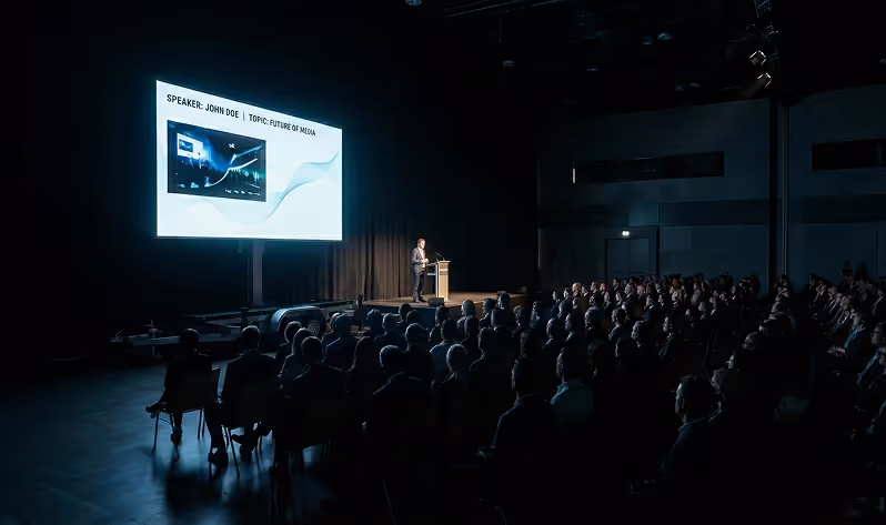 Op de eventvloer richten alle blikken zich op het scherm, terwijl je publiek moeiteloos het programma volgt.